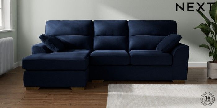 7.2.10 Buy Stamford Highback Medium Sofa Chaise - Left Hand Luxe Chenille Navy Blue Large Square Angle - Mid from the Seasons online shop Click here to use our website with more accessibility support, for example screen readers