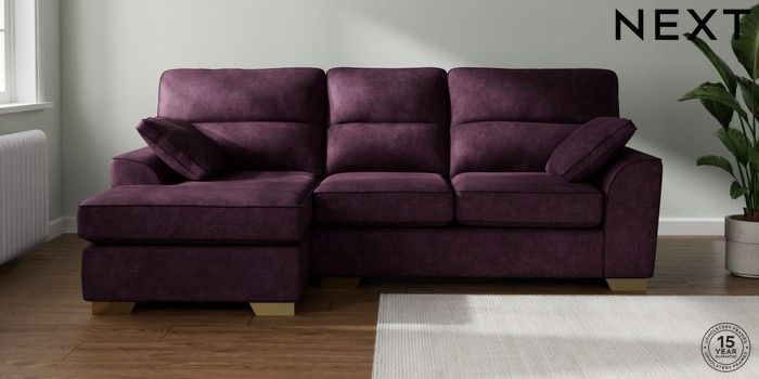 7.3.1 Buy Stamford Highback Medium Sofa Chaise - Left Hand Plush Chenille Dark Plum Purple Large Square Angle - Brushed Brass from the Seasons online shop Click here to use our website with more accessibility support, for example screen readers