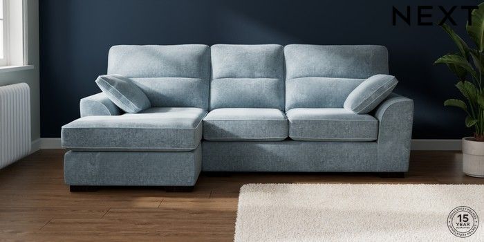7.2.10 Buy Stamford Highback Medium Sofa Chaise - Left Hand Plush Chenille Light Blue Large Square Angle - Dark from the Seasons online shop Click here to use our website with more accessibility support, for example screen readers