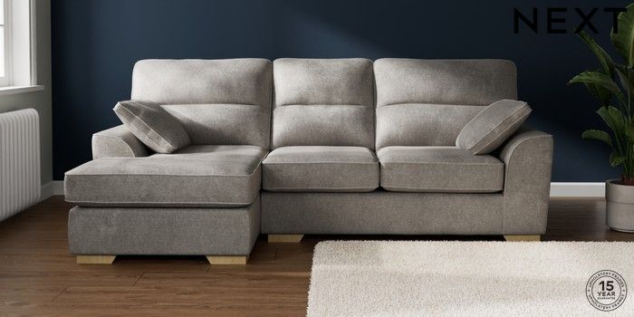 7.2.10 Buy Stamford Highback Medium Sofa Chaise - Left Hand Plush Chenille Light Grey Large Square Angle - Light from the Seasons online shop Click here to use our website with more accessibility support, for example screen readers