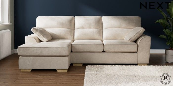 7.2.10 Buy Stamford Highback Medium Sofa Chaise - Left Hand Plush Chenille Oyster Large Square Angle - Light from the Seasons online shop Click here to use our website with more accessibility support, for example screen readers