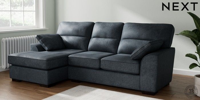 7.2.10 Buy Stamford Highback Medium Sofa Chaise - Left Hand Plush Chenille Slate Blue Large Square Angle - Dark from the Seasons online shop Click here to use our website with more accessibility support, for example screen readers