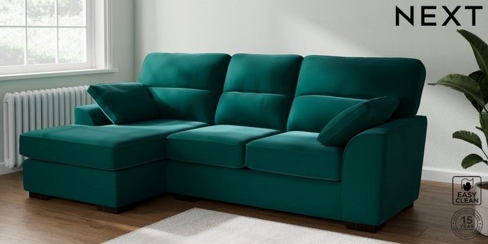 7.3.1 Buy Stamford Highback Medium Sofa Chaise - Left Hand Plush Velvet Easy Clean Juniper Green Large Square Angle - Dark from the Seasons online shop Click here to use our website with more accessibility support, for example screen readers