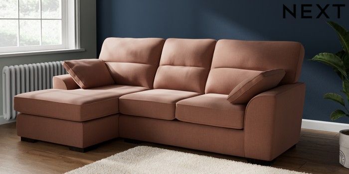 7.2.10 Buy Stamford Highback Medium Sofa Chaise - Left Hand Relaxed Linen Look Light Rust Brown Large Square Angle - Dark from the Seasons online shop Click here to use our website with more accessibility support, for example screen readers