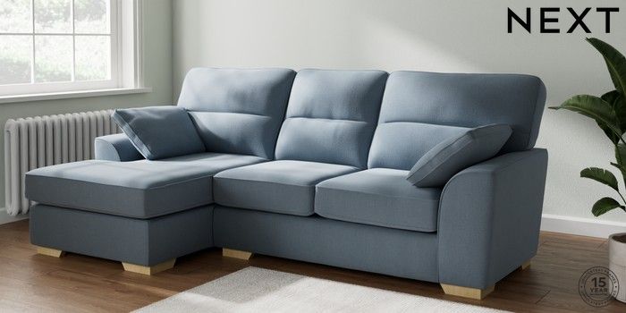 7.2.10 Buy Stamford Highback Medium Sofa Chaise - Left Hand Relaxed Linen Look Mid Blue Large Square Angle - Light from the Seasons online shop Click here to use our website with more accessibility support, for example screen readers