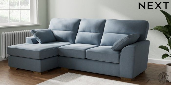 7.2.10 Buy Stamford Highback Medium Sofa Chaise - Left Hand Relaxed Linen Look Mid Blue Large Square Angle - Mid from the Seasons online shop Click here to use our website with more accessibility support, for example screen readers