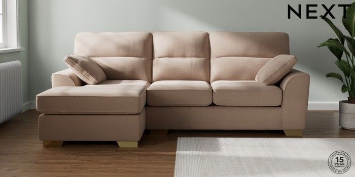 7.3.1 Buy Stamford Highback Medium Sofa Chaise - Left Hand Relaxed Linen Look Mid Natural Large Square Angle - Brushed Brass from the Seasons online shop Click here to use our website with more accessibility support, for example screen readers