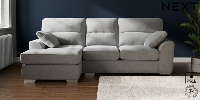7.3.1 Buy Stamford Highback Medium Sofa Chaise - Left Hand Tweedy Blend Easy Clean Light Silver Grey Large Square Angle - Chrome Metal from the Seasons online shop Click here to use our website with more accessibility support, for example screen readers