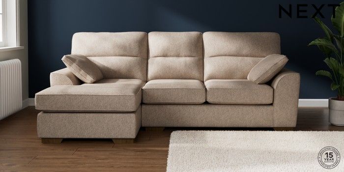 7.2.10 Buy Stamford Highback Medium Sofa Chaise - Left Hand Tweedy Chenille Mid Natural Large Square Angle - Mid from the Seasons online shop Click here to use our website with more accessibility support, for example screen readers