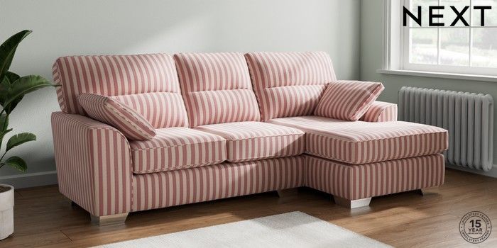 7.3.1 Buy Stamford Highback Medium Sofa Chaise - Right Hand Bold Chenille Stripe Dark Pink Large Square Angle - Chrome Metal from the Seasons online shop Click here to use our website with more accessibility support, for example screen readers