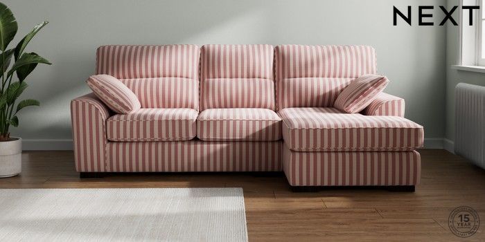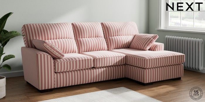 7.3.1 Buy Stamford Highback Medium Sofa Chaise - Right Hand Bold Chenille Stripe Dark Pink Large Square Angle - Dark from the Seasons online shop Click here to use our website with more accessibility support, for example screen readers