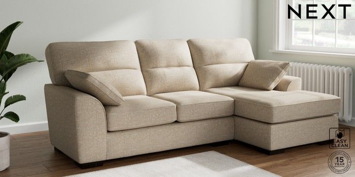 7.3.1 Buy Stamford Highback Medium Sofa Chaise - Right Hand Boucle Weave Easy Clean Dark Natural Large Square Angle - Dark from the Seasons online shop Click here to use our website with more accessibility support, for example screen readers