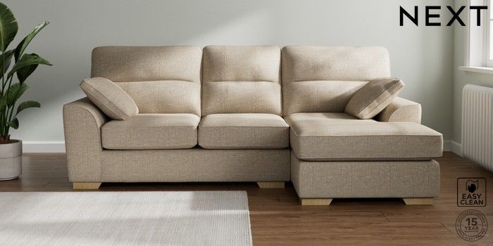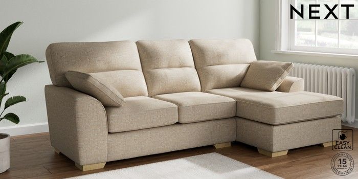 7.2.10 Buy Stamford Highback Medium Sofa Chaise - Right Hand Boucle Weave Easy Clean Dark Natural Large Square Angle - Light from the Seasons online shop Click here to use our website with more accessibility support, for example screen readers