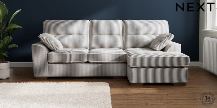 7.3.1 Buy Stamford Highback Medium Sofa Chaise - Right Hand Chenille Stripe Slate Blue Large Square Angle - Mid from the Seasons online shop Click here to use our website with more accessibility support, for example screen readers