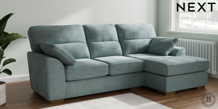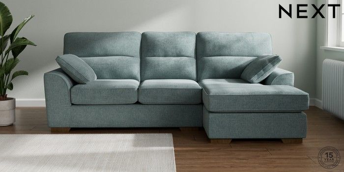 7.2.10 Buy Stamford Highback Medium Sofa Chaise - Right Hand Chunky Chenille Light Teal Green Large Square Angle - Mid from the Seasons online shop Click here to use our website with more accessibility support, for example screen readers