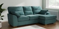 7.2.10 Buy Stamford Highback Medium Sofa Chaise - Right Hand Chunky Chenille Mid Teal Green Large Square Angle - Brushed Brass from the Seasons online shop Click here to use our website with more accessibility support, for example screen readers