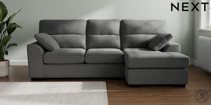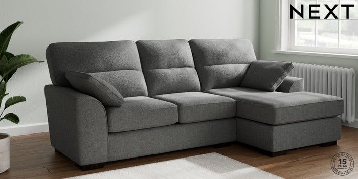 7.2.10 Buy Stamford Highback Medium Sofa Chaise - Right Hand Chunky Texture Dark Grey Large Square Angle - Dark from the Seasons online shop Click here to use our website with more accessibility support, for example screen readers