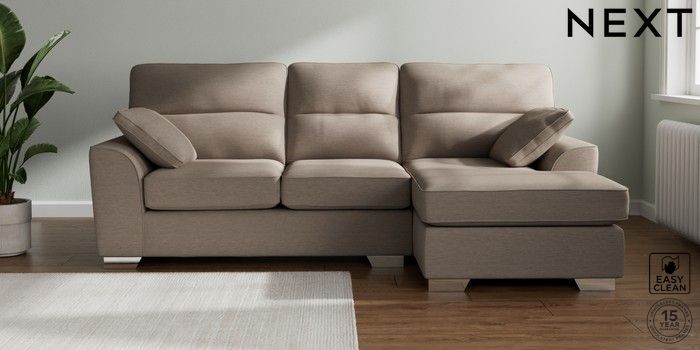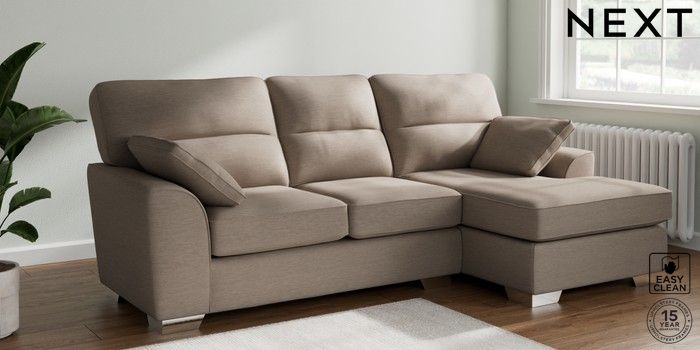7.3.1 Buy Stamford Highback Medium Sofa Chaise - Right Hand Fine Chenille Easy Clean Mid Taupe Brown Large Square Angle - Chrome Metal from the Seasons online shop Click here to use our website with more accessibility support, for example screen readers