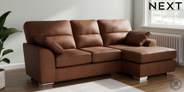 7.3.1 Buy Stamford Highback Medium Sofa Chaise - Right Hand Monza Faux Leather Easy Clean Chestnut Brown Large Square Angle - Chrome Metal from the Seasons online shop Click here to use our website with more accessibility support, for example screen readers