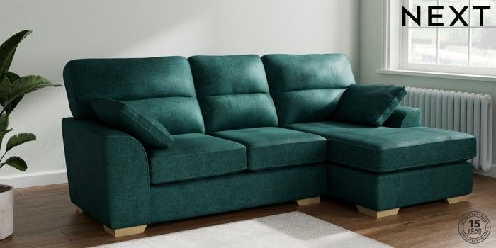 7.2.10 Buy Stamford Highback Medium Sofa Chaise - Right Hand Plush Chenille Dark Teal Green Large Square Angle - Light from the Seasons online shop Click here to use our website with more accessibility support, for example screen readers