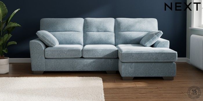 7.2.10 Buy Stamford Highback Medium Sofa Chaise - Right Hand Plush Chenille Light Blue Large Square Angle - Gunmetal from the Seasons online shop Click here to use our website with more accessibility support, for example screen readers