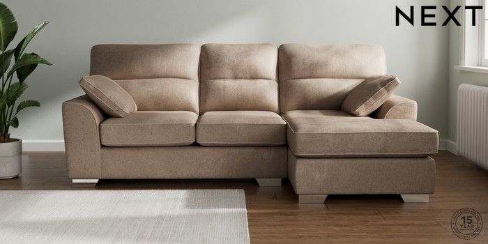 7.3.1 Buy Stamford Highback Medium Sofa Chaise - Right Hand Plush Chenille Mid Natural Large Square Angle - Chrome Metal from the Seasons online shop Click here to use our website with more accessibility support, for example screen readers