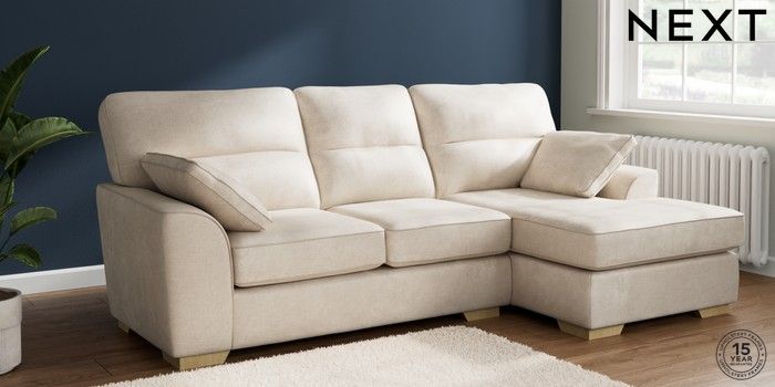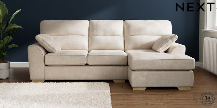 7.2.10 Buy Stamford Highback Medium Sofa Chaise - Right Hand Plush Chenille Oyster Large Square Angle - Light from the Seasons online shop Click here to use our website with more accessibility support, for example screen readers
