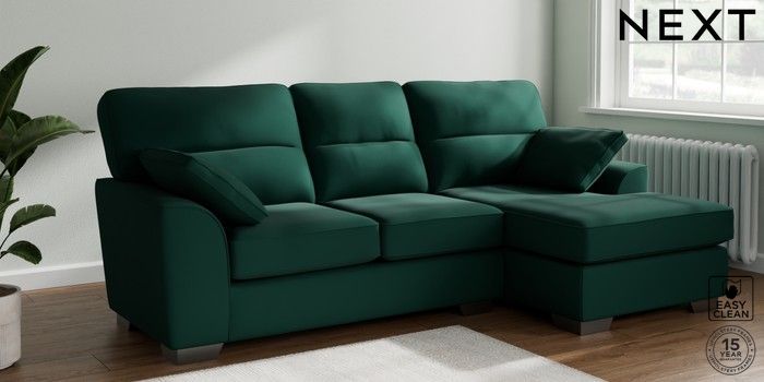 7.3.1 Buy Stamford Highback Medium Sofa Chaise - Right Hand Plush Velvet Easy Clean Bottle Green Large Square Angle - Gunmetal from the Seasons online shop Click here to use our website with more accessibility support, for example screen readers