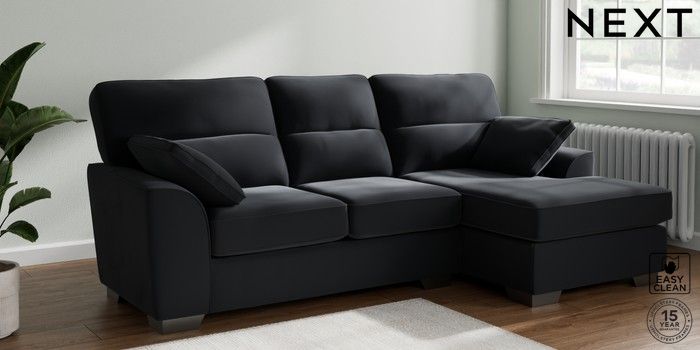 7.3.1 Buy Stamford Highback Medium Sofa Chaise - Right Hand Plush Velvet Easy Clean Charcoal Grey Large Square Angle - Gunmetal from the Seasons online shop Click here to use our website with more accessibility support, for example screen readers