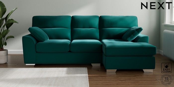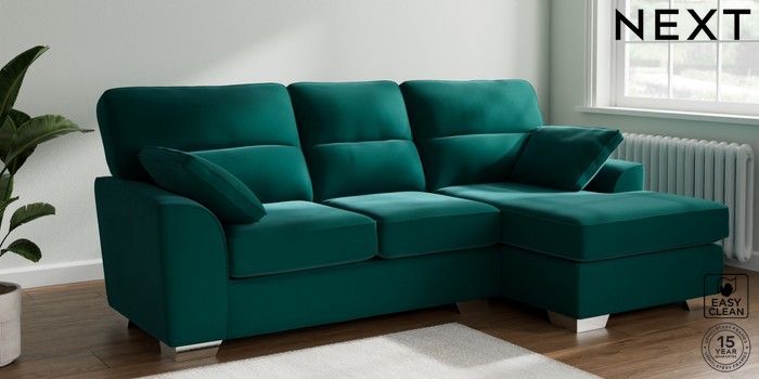 7.3.1 Buy Stamford Highback Medium Sofa Chaise - Right Hand Plush Velvet Easy Clean Juniper Green Large Square Angle - Chrome Metal from the Seasons online shop Click here to use our website with more accessibility support, for example screen readers