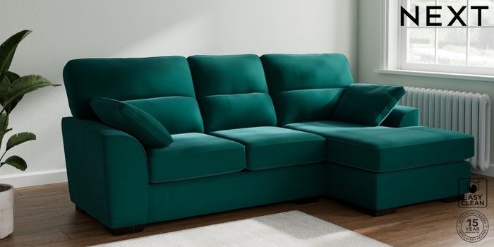 7.3.1 Buy Stamford Highback Medium Sofa Chaise - Right Hand Plush Velvet Easy Clean Juniper Green Large Square Angle - Dark from the Seasons online shop Click here to use our website with more accessibility support, for example screen readers