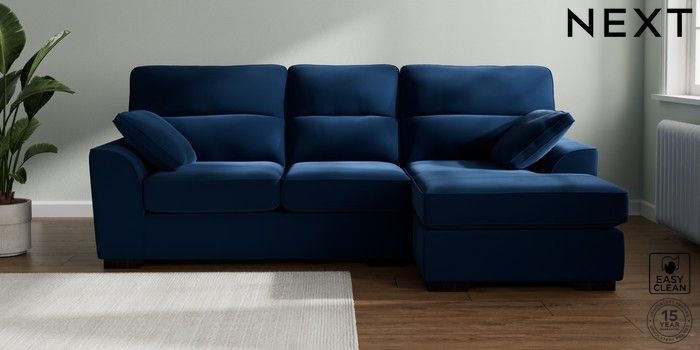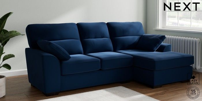 7.3.1 Buy Stamford Highback Medium Sofa Chaise - Right Hand Plush Velvet Easy Clean Navy Blue Large Square Angle - Dark from the Seasons online shop Click here to use our website with more accessibility support, for example screen readers