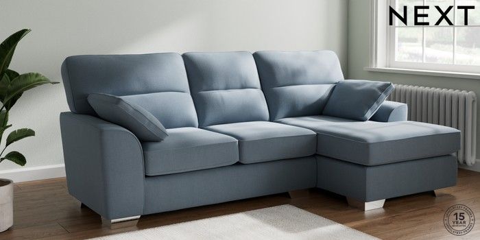 7.3.1 Buy Stamford Highback Medium Sofa Chaise - Right Hand Relaxed Linen Look Mid Blue Large Square Angle - Chrome Metal from the Seasons online shop Click here to use our website with more accessibility support, for example screen readers