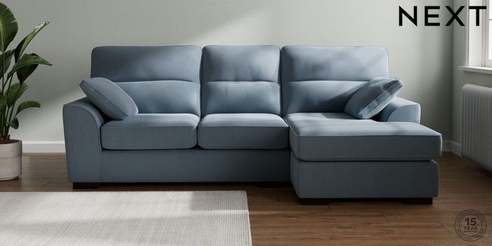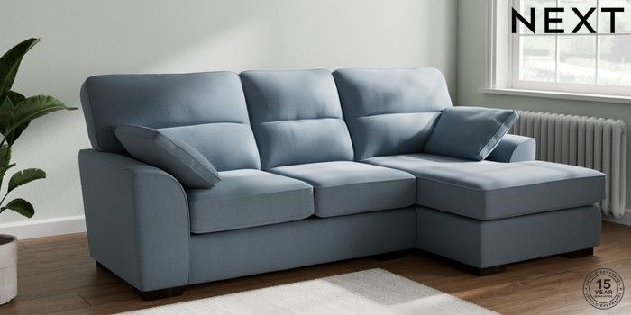 7.2.10 Buy Stamford Highback Medium Sofa Chaise - Right Hand Relaxed Linen Look Mid Blue Large Square Angle - Dark from the Seasons online shop Click here to use our website with more accessibility support, for example screen readers
