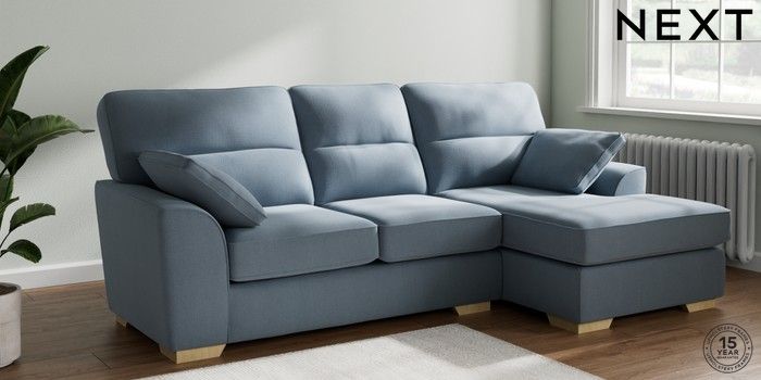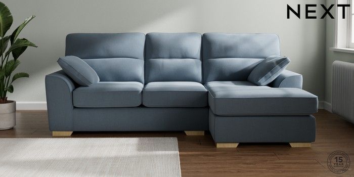 7.2.10 Buy Stamford Highback Medium Sofa Chaise - Right Hand Relaxed Linen Look Mid Blue Large Square Angle - Light from the Seasons online shop Click here to use our website with more accessibility support, for example screen readers