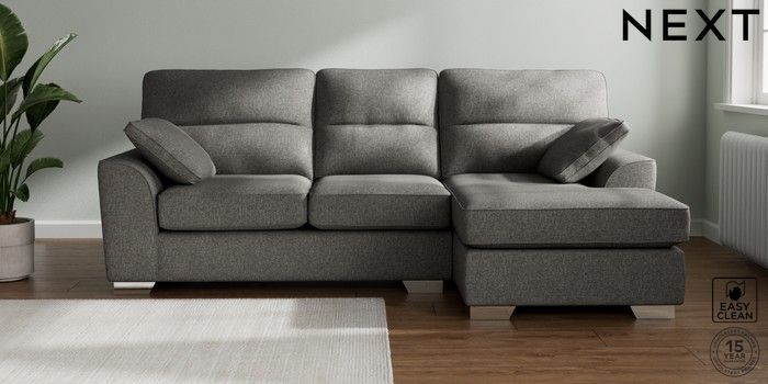 7.3.1 Buy Stamford Highback Medium Sofa Chaise - Right Hand Tweedy Blend Easy Clean Dark Grey Large Square Angle - Chrome Metal from the Seasons online shop Click here to use our website with more accessibility support, for example screen readers