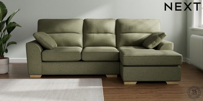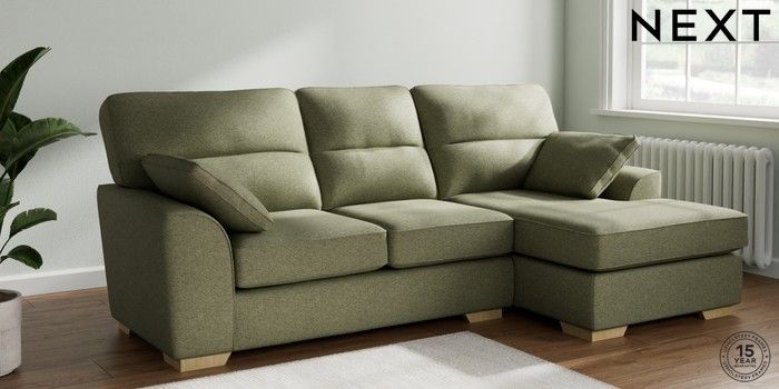 7.2.10 Buy Stamford Highback Medium Sofa Chaise - Right Hand Tweedy Chenille Mid Moss Green Large Square Angle - Light from the Seasons online shop Click here to use our website with more accessibility support, for example screen readers