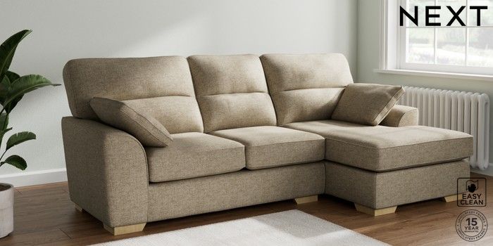7.2.10 Buy Stamford Highback Medium Sofa Chaise - Right Hand Woven Chenille Easy Clean Mid Natural Large Square Angle - Light from the Seasons online shop Click here to use our website with more accessibility support, for example screen readers