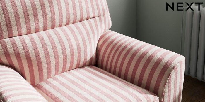 7.3.1 Buy Stamford Highback Small Armchair Bold Chenille Stripe Dark Pink Square Angle - Dark from the Seasons online shop Click here to use our website with more accessibility support, for example screen readers