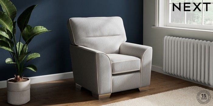 7.3.1 Buy Stamford Highback Small Armchair Chenille Stripe Slate Blue Square Angle - Chrome Metal from the Seasons online shop Click here to use our website with more accessibility support, for example screen readers