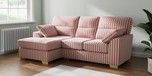7.3.1 Buy Stamford Highback Small Sofa Chaise - Left Hand Bold Chenille Stripe Dark Pink Large Square Angle - Brushed Brass from the Seasons online shop Click here to use our website with more accessibility support, for example screen readers