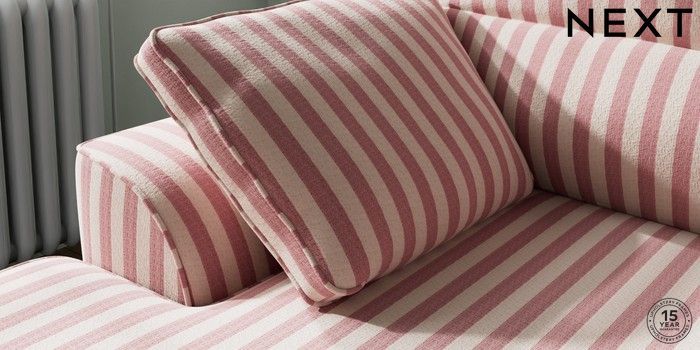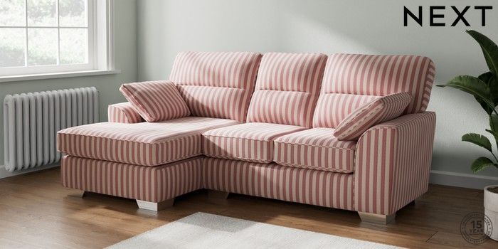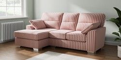 7.3.1 Buy Stamford Highback Small Sofa Chaise - Left Hand Bold Chenille Stripe Dark Pink Large Square Angle - Chrome Metal from the Seasons online shop Click here to use our website with more accessibility support, for example screen readers