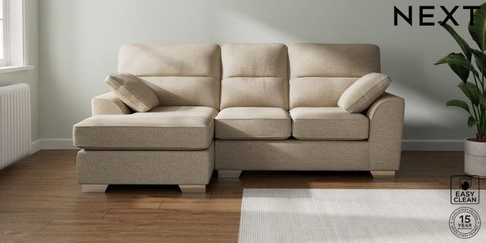 7.3.1 Buy Stamford Highback Small Sofa Chaise - Left Hand Boucle Weave Easy Clean Dark Natural Large Square Angle - Chrome Metal from the Seasons online shop Click here to use our website with more accessibility support, for example screen readers