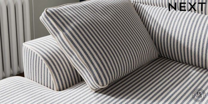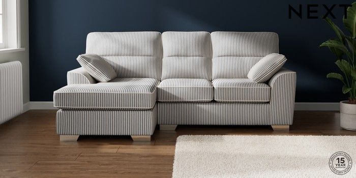 7.3.1 Buy Stamford Highback Small Sofa Chaise - Left Hand Chenille Stripe Slate Blue Large Square Angle - Chrome Metal from the Seasons online shop Click here to use our website with more accessibility support, for example screen readers