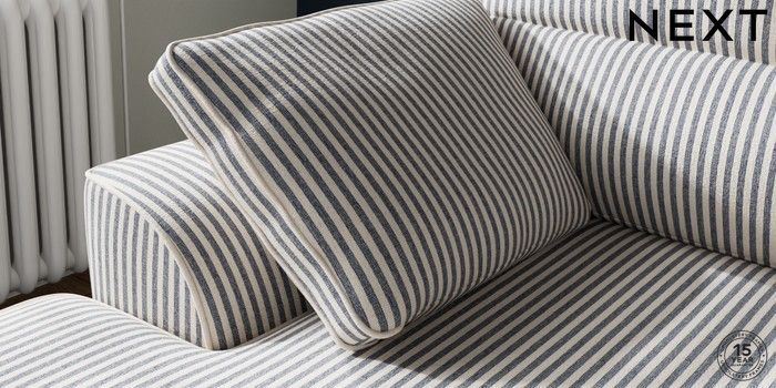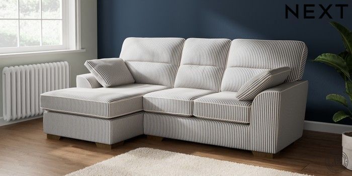 7.3.1 Buy Stamford Highback Small Sofa Chaise - Left Hand Chenille Stripe Slate Blue Large Square Angle - Mid from the Seasons online shop Click here to use our website with more accessibility support, for example screen readers