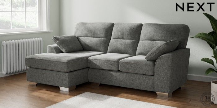 7.2.10 Buy Stamford Highback Small Sofa Chaise - Left Hand Chunky Chenille Dark Grey Large Square Angle - Chrome Metal from the Seasons online shop Click here to use our website with more accessibility support, for example screen readers