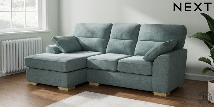 7.2.10 Buy Stamford Highback Small Sofa Chaise - Left Hand Chunky Chenille Light Teal Green Large Square Angle - Light from the Seasons online shop Click here to use our website with more accessibility support, for example screen readers