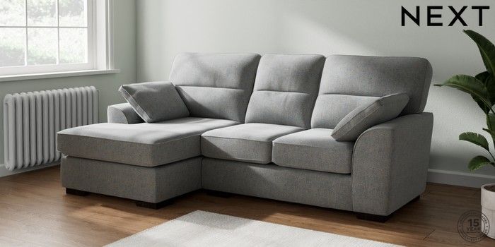 7.2.10 Buy Stamford Highback Small Sofa Chaise - Left Hand Chunky Marl Mid Grey Large Square Angle - Dark from the Seasons online shop Click here to use our website with more accessibility support, for example screen readers