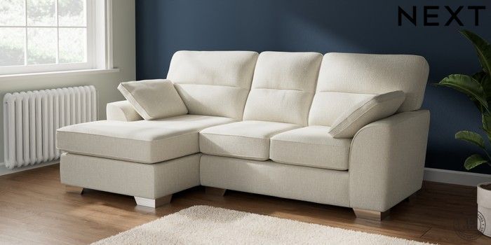 7.2.10 Buy Stamford Highback Small Sofa Chaise - Left Hand Chunky Texture Oyster Large Square Angle - Chrome Metal from the Seasons online shop Click here to use our website with more accessibility support, for example screen readers