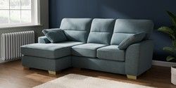 7.2.10 Buy Stamford Highback Small Sofa Chaise - Left Hand Fine Chenille Easy Clean Mid Blue Large Square Angle - Brushed Brass from the Seasons online shop Click here to use our website with more accessibility support, for example screen readers